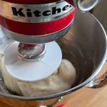 Den Teig mit einer Folie oder einer Haube abdecken und wie beim Basisteig für gute 8 Stunden bei Raumtemperatur reifen lassen. Er ist gut aufgegangen und nun wird er vorsichtig aus der Schüssel auf die bemehlte Arbeitsfläche geholt. Falte den Teig wie beim BasisTeig von jeder Seite einmal nach innen und drückt ihn immer leicht an. Dreh ihn dann um und lasse ihn für eine halbe Stunde abgedeckt ruhen.