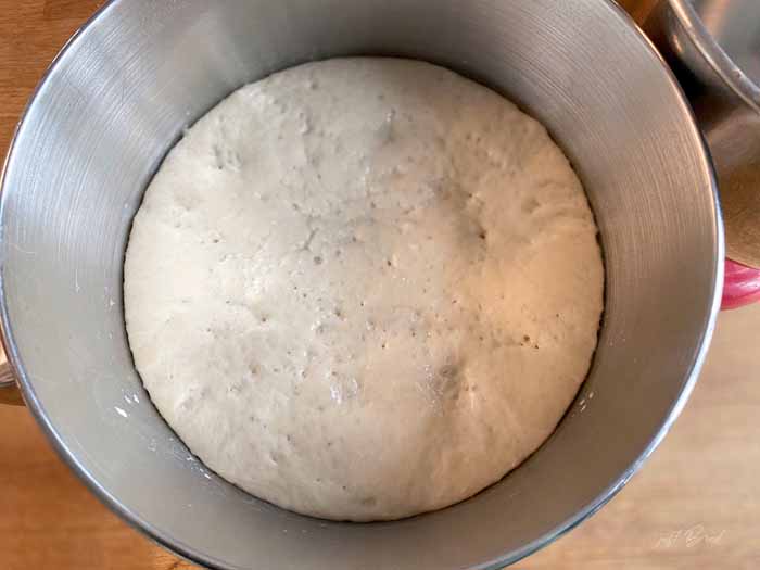 Ich habe hier aber eine neue Variante für Euch. Ihr lasst den Teig für eine bis zwei Stunden bei Raumtemperatur angehen ("anspringen") und stellt ihn dann für das weitere Gehen abgedeckt in den Kühlschrank. Nun kann der Teig weiter reifen - bis zu 48 Stunden - dabei wird er alle 24 Stunden einmal von allen vier Seiten zur Mitte hin gefaltet. So kann man die Backzeit flexibler gestalten und der Teig wird durch die lange Reifezeit aromatischer. Alle weiteren Schritte folgen dann wie oben beschrieben.